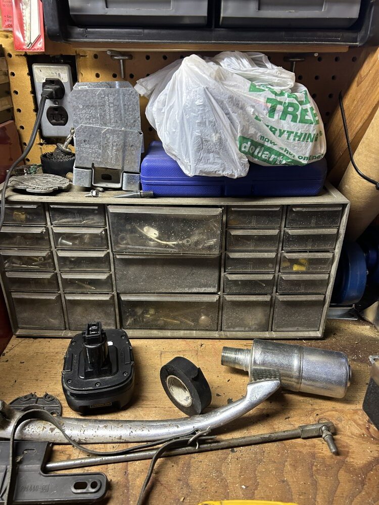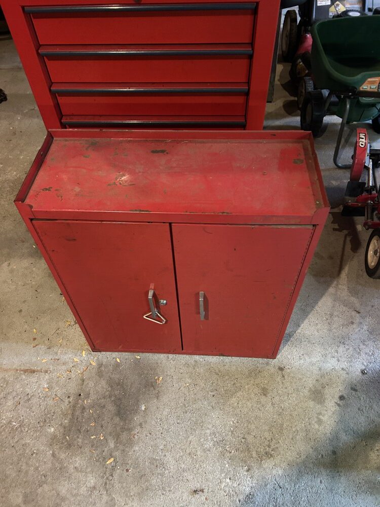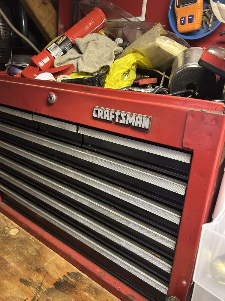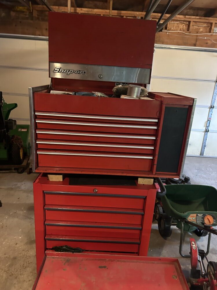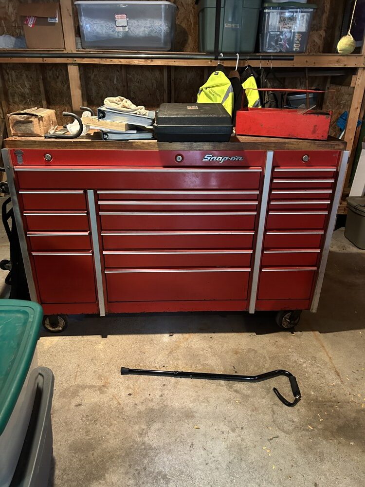 19-Drawer rolling cabinet, Heavy duty ¾” ratchet head, 11-Drawer rolling toolbox, ¾” up to 2 ¼” socket sets, Allen wrench set, Screw & nut drivers, Channel locks & needle nose pliers, Pry bar, Socket sets, ½” & ¾” breaker bars, Torque wrench, Large gear pulling set, Tubing & puller sets, AC tools (R-134), O-ring plier set, Bushing driver set, Large wheel-seal puller wrench, Creeper, Brake springs pry bar, Large mallet, Jumper cables, ¼” Socket set & air drive, Bottle jack, Tach dwell & timing light.
