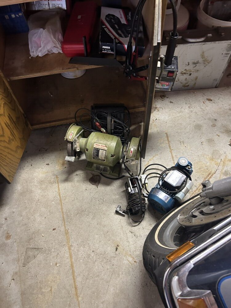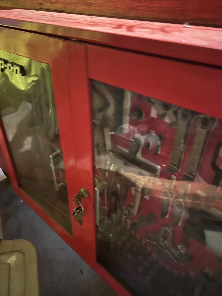Crescent wrench set, Mallet, Screw & nut drivers, Pry bars, SAE socket set, Heat gun, Electric tester set, Wiring harness kit, Power supply, Hex sockets, Socket sets, Deep-well socket set, Long drive shaft sockets, Torque wrench, Air chisel w/bits, Bushing driver set, Thread chaser set, Differential timer, “Central Tools” dial indicator, Hoof/pick set, Puddy knives, Plier set w/cutter, Bar cabinet.