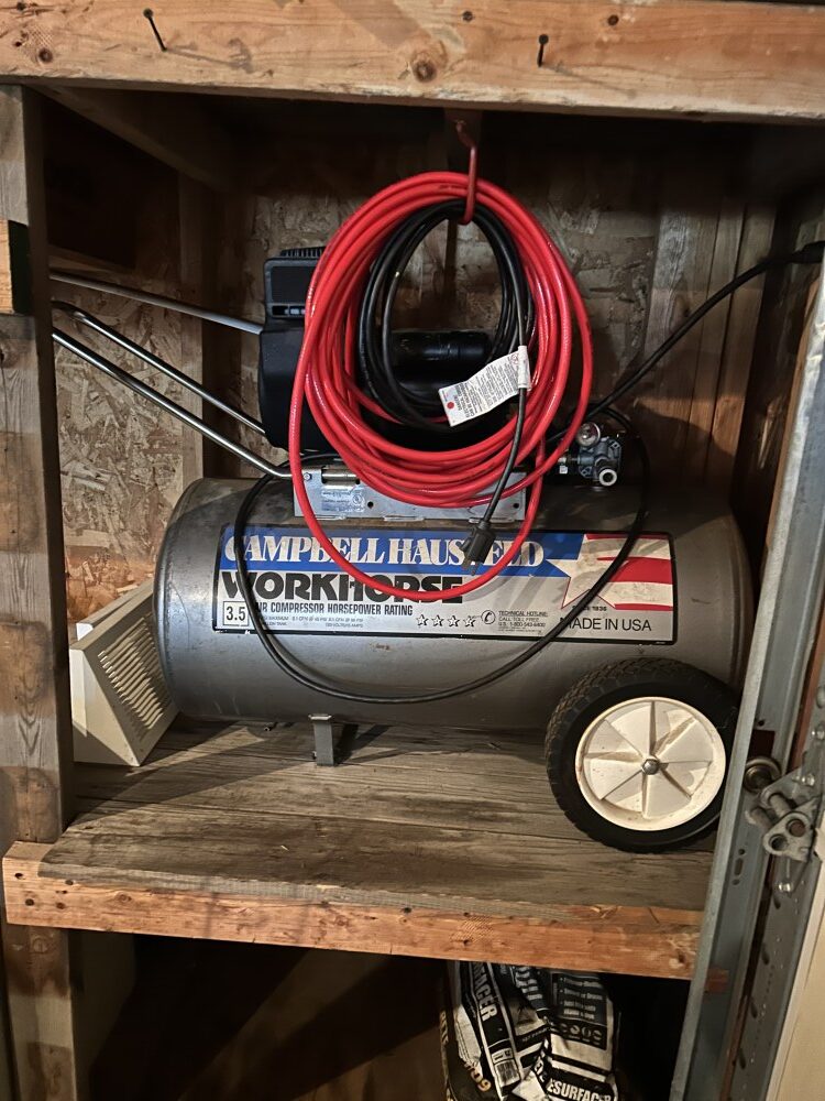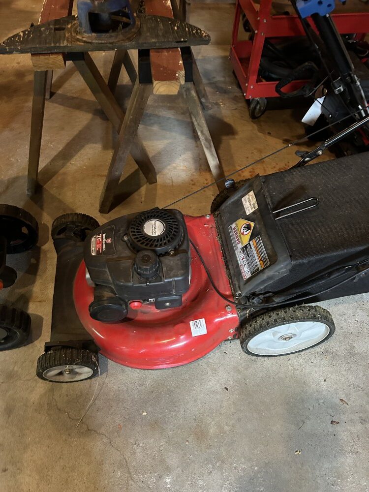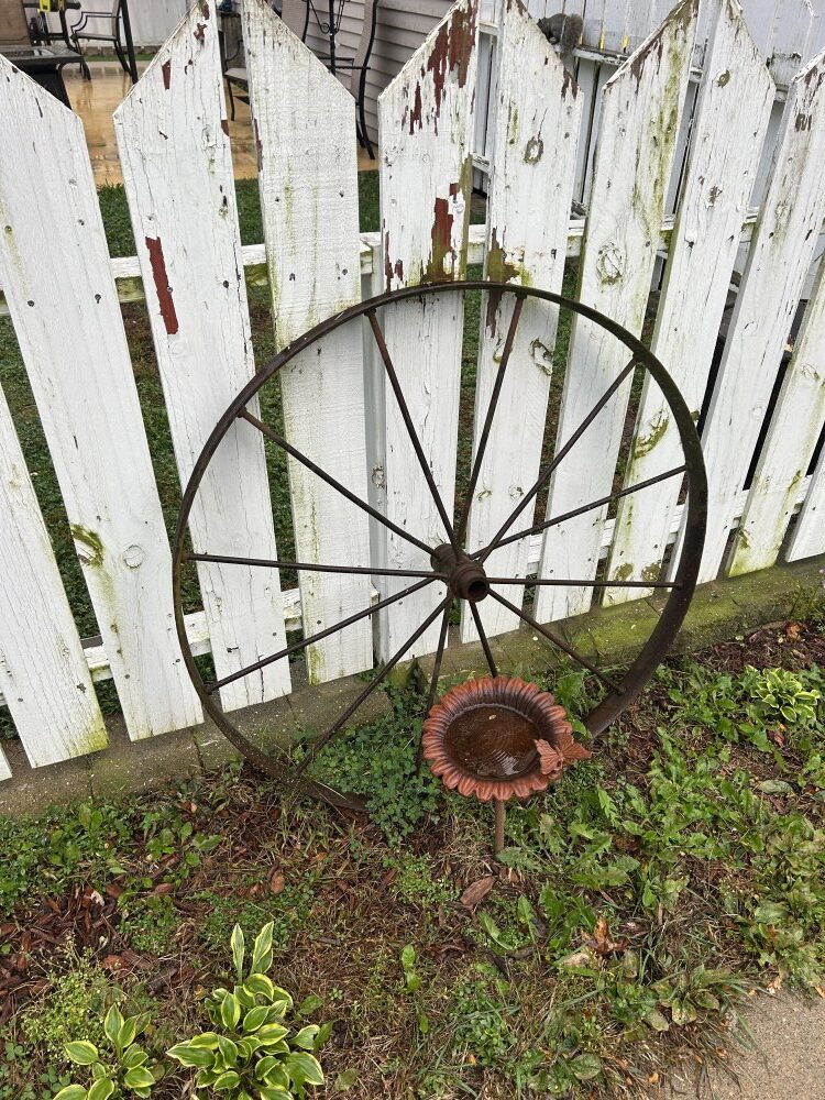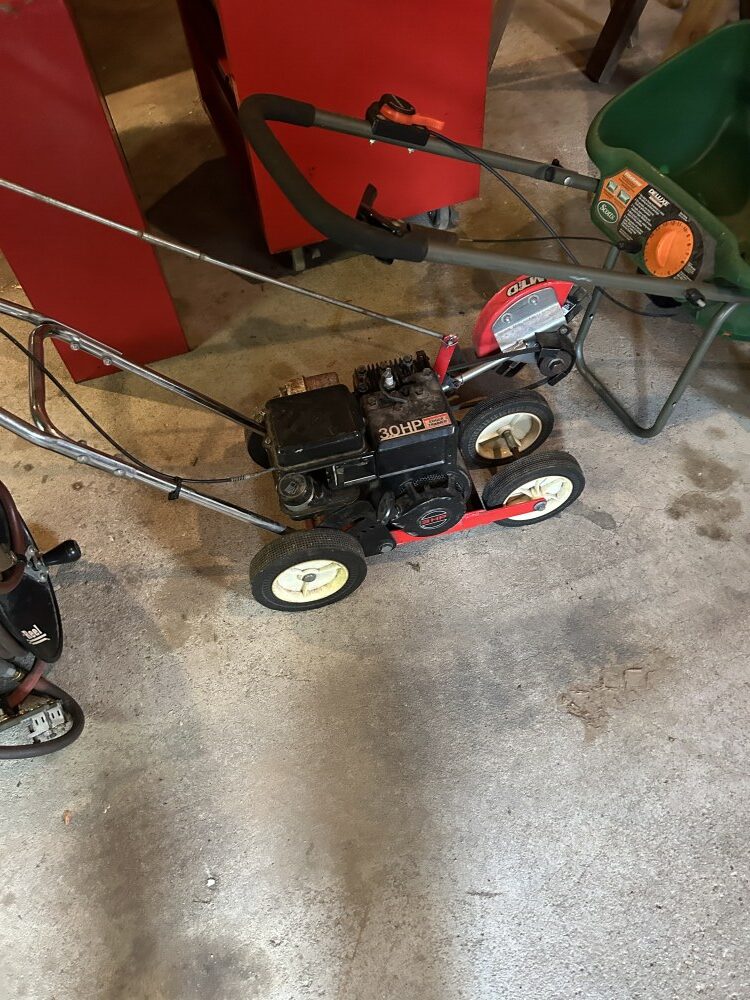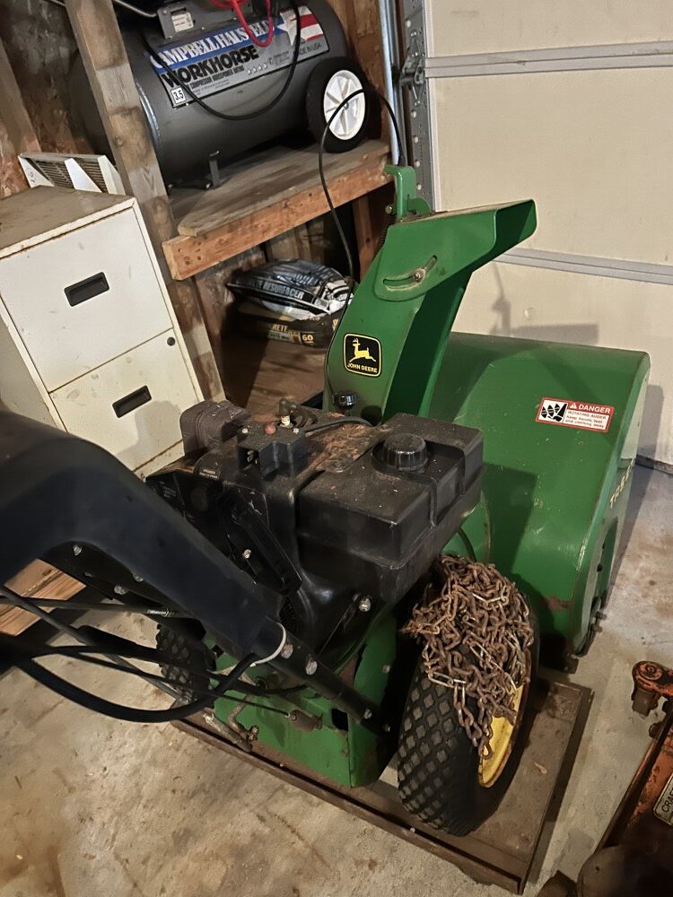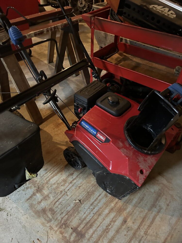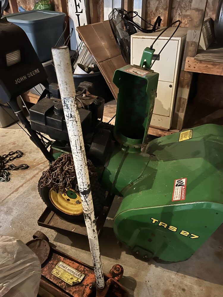 Yard Machine 21” self-propelled mower, 2022 Toro 721 snowblower w/electric start-Like new, Levels, John Deere TRS27 8 h.p. snowblower, Patio furniture, Campbell Hausfeld air compressor, Fuel cans, MTD 3 h.p. lawn edger, 2 ½ ton floor jack, Many ratchet ties, Electric skilsaw, Rakes, shovels, & forks, Air hose w/reel, Snow shovels, Heavy duty log chains, 10’ Metal stepladder, Handsaws, Ridgid 16 gal. shop vac, Pitcher pump, Ornate white posts w/”Welcome” sign, Turkey fryer, Heated bird baths. Bird feeders, Decorative steel wheels, Gas fire pit, Ryobi string trimmers, 5’x10’ Ball hitch single axle trailer, Indian & Harley Davidson metal signs, First Baseman ball gloves, Weber charcoal grill-New, Scotts lawn spreader.