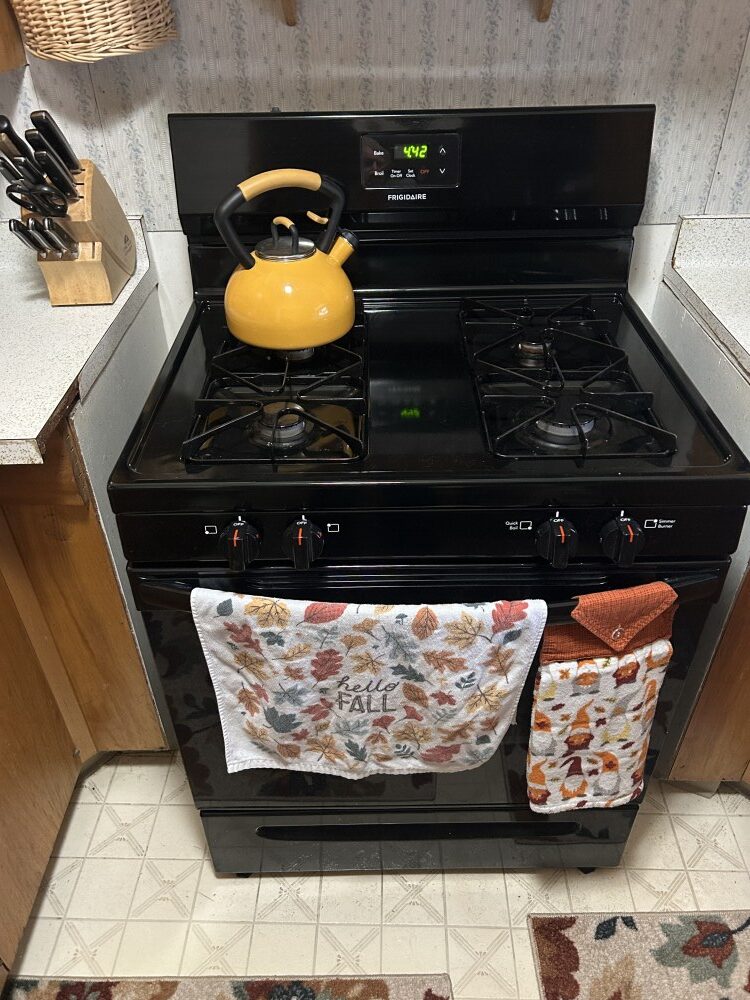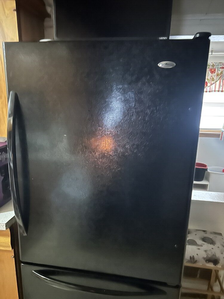 Amana refrigerator/freezer, Hamilton Beach microwave, Frigidaire gas range-6 yrs old & nice.